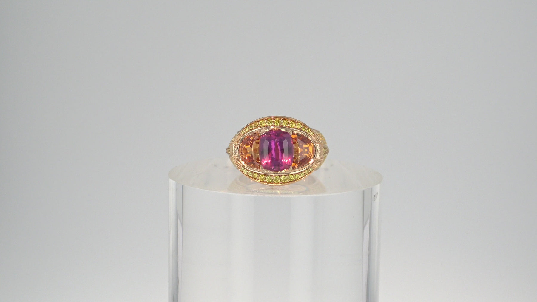 Magenta Sapphire, Yellow Diamond and Spessarite Ring